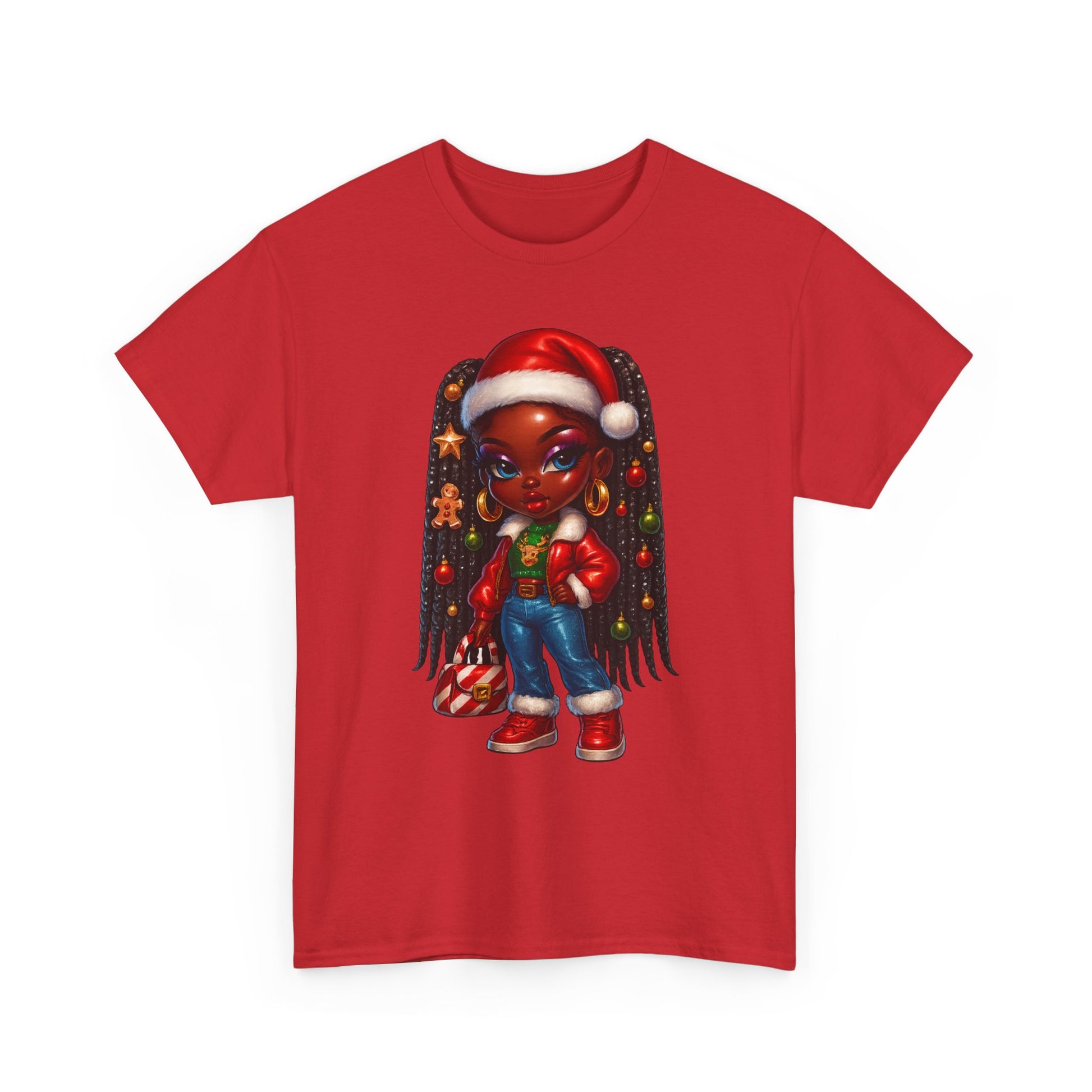 Christmas Girl Tee — Cute Black Girl Santa Graphic T-Shirt