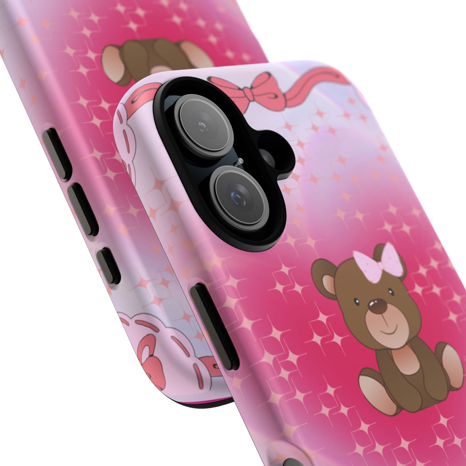 Introducing our adorable protective phone case, perfect for adding a touch of whimsy to your everyday life. This cheerful design features a charming teddy bear against a sparkling pink backdrop, radiating warmth and kindness. Ideal for those who love playful aesthetics, this phone case not only protects your devices but also reflects your personality. It’s a great gift for friends and family during special occasions like birthdays, baby showers, or just to brighten someone’s day. Create a joyful atmosphere as you reach for your phone, knowing it's safeguarded with style that’s both cute and functional!