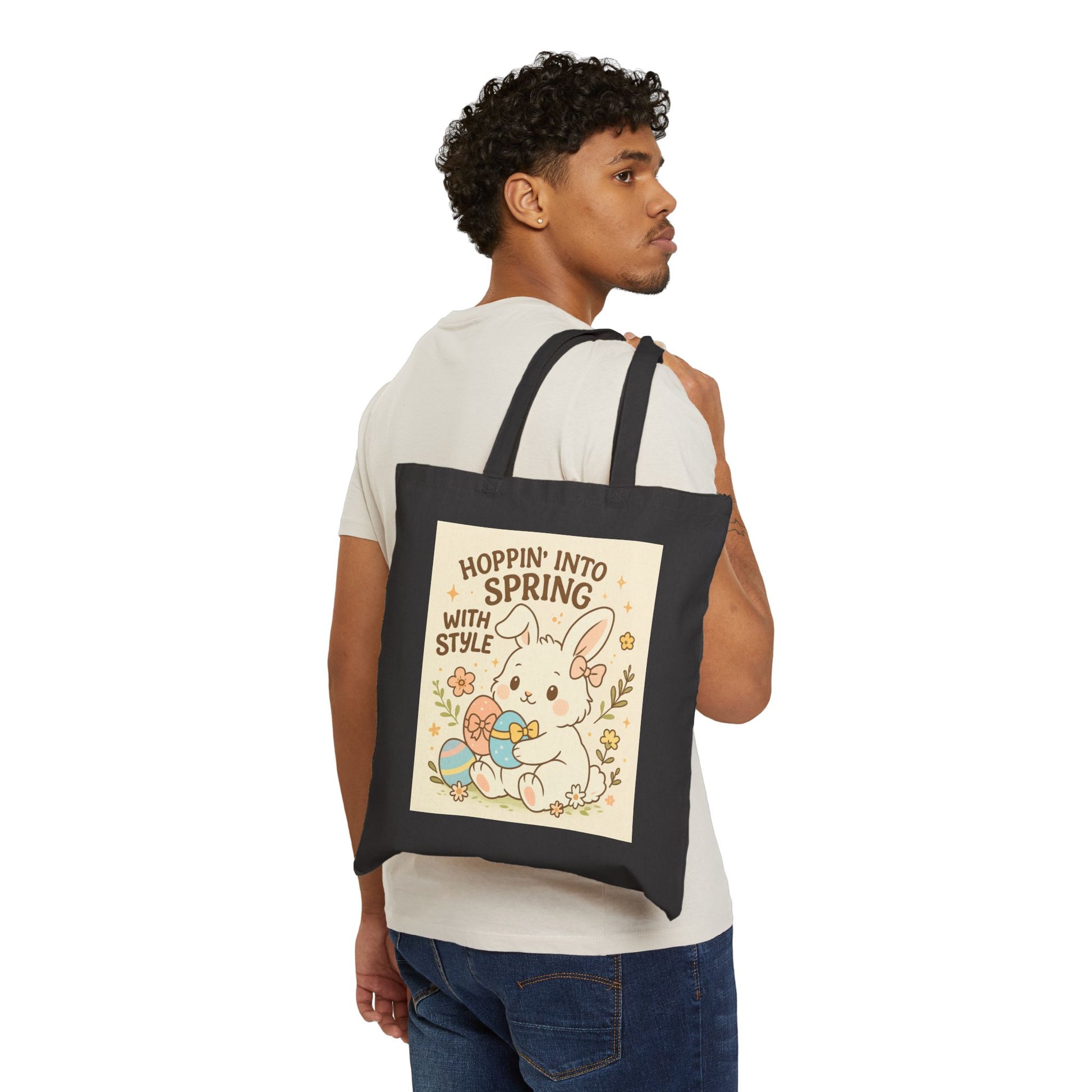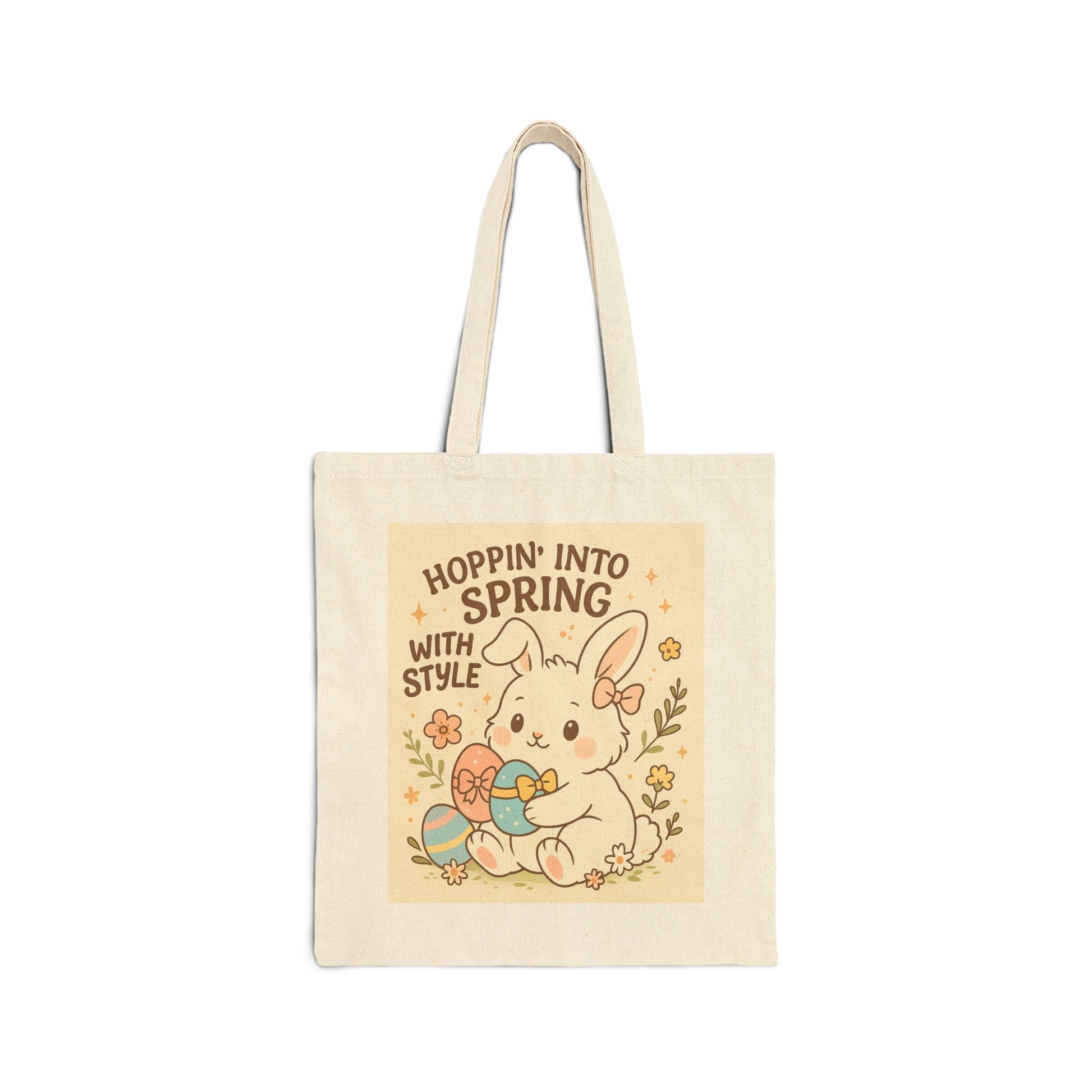 Introducing our delightful Cotton Canvas Tote Bag, designed for the vibrant souls who love to express themselves with charm! This tote features an adorable bunny illustration that radiates joy and energy, making it perfect for springtime outings, picnics, or farmer's market trips. Envelop yourself in its cheerful vibe as you carry your daily essentials with ease. This tote bag is ideal for eco-conscious individuals, animal lovers, or anyone looking to add a splash of whimsy to their sustainable lifestyle. Perfect for holidays like Easter or Earth Day, it makes a thoughtful gift for friends and family celebrating special moments together.